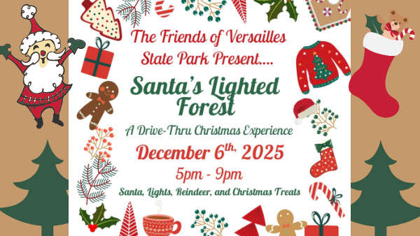 The Friends Versailles State Park present “Santa’s Lighted Forest” - a Drive-Thru Christmas Experience.